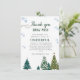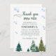 Elegante cartões de agradecimentos de comemoração de inverno com ilustração aquosa de pinheiros e flocos de neve. As palavras leram "obrigado você nevar muito pelo fazer do meu aniversário ONEMaravilhoso."