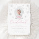 Convide a família e os amigos a celebrarem o primeiro aniversário da sua bebê com este convite da Winter ONEderland. O design apresenta um arco cor-de-rosa, flocos de neve prateados cintilantes, e um doce quadro do globo de neve com espaço para a foto do seu filho. Perfeito para uma festa temática mágica do inverno, este convite dá o tom para uma celebração elegante e festiva.