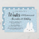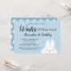Simples, fofo, coelho branco de desenho animado e dia de inverno com neve. Um convite de primeiro aniversario único, branco, adorável e azul de inverno ONEderland.