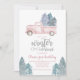 Winter Onederland primeira festa de aniversário com Caminhão rosa com Árvores primeiro convite de aniversário.