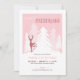 Primeiro aniversário da Wonderland de inverno, Convite de Onederland com sotaques bonitos. Pequenos flocos de neve ao fundo. Em uma frente com um veado e pinheiros. Defina um tom doce e mágico para a festa com este convite. Perfeito para o primeiro aniversário do seu floco de neve.