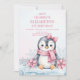 Winter Onederland Penguin Girl Birthday Invitation.A Pink Winter Wonderland Penguin birthday invitation featuring an Adorable Watercolor Penguin and Soft Falling Snow. Perfect for Girls celebrating a Winter Onederland Birthday.