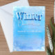 Celebre seu aniversário e divirta-se com o tempo frio. O design de convite é destacado por design de título de tendência de na moda com fundo de floresta de neve