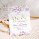 Winter Onederland no primeiro aniversário do convite com flocos de neve roxos e dourados.