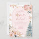 Este é um Convite de festas de primeiro aniversario de floco de neve rosa-rosa da Onederland Winter!
