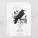 Um design, incrivelmente elegante, com um corvo preto empoleirado em galhos cobertos por neve, acentuado com pinheiro de inverno, sagrado vermelho-sangue, e sutis motivos do crânio. Esse convite para casamentos no inverno gótico combina romantismo negro com sofisticados detalhes sazonais, perfeito para casais que abraçam uma estética poética e sangrenta. A disposição minimalista desenhar o olhar para a ilustração impressionante, mantendo ao mesmo tempo uma sensação refinada de equilíbrio e espaço. Uma escolha única para casamentos não tradicionais, especialmente durante os meses mais frios.
