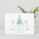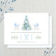 Embrace the festive spirit with this wintery twin boys blue baby shower invitation, featuring two blue carriages and a delightful blue and green Christmas tree.