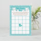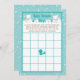 Este bingo de chá de fraldas giro e divertido apresenta uma adorável família de raposa-ártico num cenário de inverno maravilhoso com árvores com capas de neve e um pássaro azul num galho com holly. Ao fundo está um céu verde azul teal e flocos de neve caindo. O texto combina fontes decorativas e sans serif para um aspecto na moda e moderno. Isto é perfeito para um chá de fraldas temático de Natal ou inverno.