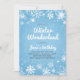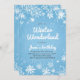 Invite family and friends to a magical celebration with this Winter Wonderland Birthday Invitation, featuring a soft blue background sprinkled with delicate white snowflakes. The playful script font and whimsical snowfall design create a cozy winter feel that’s perfect for children’s birthdays or seasonal parties.