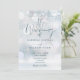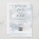 Um convite elegante para o casamento, que inclui tipografia com script de caligrafia e flocos de neve delicados, que se cruzam com seus nomes personalizados, data especial e detalhes do evento de celebração de casamento em um fundo de geada de inverno com seus detalhes no site do casamento e seu código QR no verso. Projetado por Thisnotme©