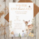 Celebre seu filho de um ano com essas maravilhosas terras do inverno e cervos da floresta nos primeiros convites de aniversário! Flores d'água e cogumelos fazem estes mágicos!
