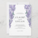 Este convite de casamento elegante e romântico apresenta um fundo branco com asteria em aquarela. O verso apresenta um fundo roxo leve com padrões de wisteria. Personalize-o para as suas necessidades. Você pode encontrar produtos correspondentes na minha loja.