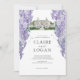 Este convite de casamento elegante e romântico apresenta um fundo branco com uma mansão rodeada por wisteria em aquarela. O verso apresenta um fundo roxo leve com padrões de wisteria. Personalize-o para as suas necessidades. Você pode encontrar produtos correspondentes na minha loja.