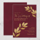 Convites Wistful Leaves Elegant Burgundy & Gold Wedding