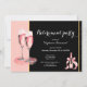 Make her retirement party unforgettable with this stylish and festive invitation design! With a sophisticated two-tone pink & black layout, the left side features a rich pink shade adorned with golden glitters, watercolor champagne glasses, and a bottle that sets the scene for a bubbly celebration. The scripted “Retirement party” adds a touch of glamour and excitement across the card. On the right, the soft pink background offers room for all your personalized party details in a classy script and serif font pairing. The back design continues the elegant theme with a lighter pink base and shimmering glitter details.
