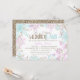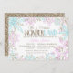 Flocos de neve de Pastel e prata com brilho e aspecto de folha de alumínio sobre fundo branco design de convite para chá de fraldas.
