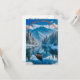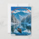 A carta apresenta uma cena de inverno encantadora, onde um rio tranquilo tece através de uma paisagem nevada enfeitada com pinheiros torrenciais, poeirados em branco congelado. Ao fundo, as majestosas montanhas com capas de neve ficam orgulhosamente sob um céu azul claro e brilhante, exuando uma sensação de serenidade. Um barco de madeira fino flutua suavemente sobre a água estática, como um espelho, refletindo perfeitamente o ambiente idílico. A atmosfera química convida-vos a abraçar a magia da estação.