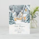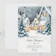 Um modelo de convite de festas moderno, elegante e chic, neutro em termos de gênero, apresentando uma pintura aquosa de uma terra maravilhosa de inverno com uma vila no inverno com árvores cobertas de neve e luzes brilhantes e quentes de janela. Um design elegante e eterno para uma futura mãe ou pais que estão comemorando um chá de fraldas nos frios meses de inverno, novembro, dezembro ou janeiro.