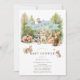 This cute baby shower invitation features woodland animals, such as a fox, raccoon, hedgehog, squirrel, mouse, deer, bunny and bear in a forest. The reverse side features a green background with trees and bears. Personalize it for your needs. You can find matching products at my store.