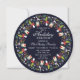 Woodland Christmas Wreath | Brunch de Natal O Convite apresenta uma elegante camada floral de madeira de cor d'água sobre fundo azul marinho. Dentro a coroa adicione suas informações personalizadas para seus Convites de festas de Natal. Basta editar o texto nas caixas de texto fornecidas. Projetado para você pelo Evco Holidays www.zazzle.com/store/evcoholidays
