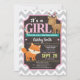 É uma garota! Convite para chá de fraldas floral; perfeito para chás primavera. Apresenta Cinzas e padrões de fundo de fevron branco com cervídeos e animais de raposa.