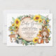 Celebre a chegada da sua pequena selvagem com este convite de chá de fraldas mimetizado de girassol/floresta. O design apresenta um grupo de adoráveis amigos florestais (veados, ursos, guaxinim, raposa, coruja) e verde-aquarela e girassóis rústicos.