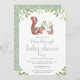 A natureza elegante inspirou o passeio através de convites para o chá de bebê apresenta uma doce ilustração aquosa de um esquilo mama compartilhando um galho de bagas com seu bebê. Personalize com a sua floresta ou floresta temática dirigindo por chá de fraldas detalhes abaixo.