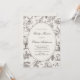 The invitation features a soothing neutral, ivory white background, creating a warm and inviting canvas that resonates with the natural beauty of the woods. Adorning the background is a whimsical allover print, featuring delicate pencil sketches of adorable baby animals and botanical elements. These charming illustrations evoke the serene beauty of a woodland adventure, adding a touch of whimsy and delight to your celebration.