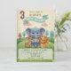 Celebrate a special third birthday with this sweet storybook-style forest animals birthday invitation. Featuring a friendly elephant, gentle deer, and cheerful lion in a soft pastel meadow, this design feels like a page from a children’s storybook.