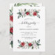 Este simples e elegante convite de festas de Natal apresenta buquês de na moda, aquarelas, feitas de verde moderno e flores de Natal vermelhas e brancas, sobre fundo branco. A parte de trás do convite apresenta uma na moda, coroa de Natal correspondente. Este estilo elegante é perfeito para a sua própria festa familiar ou para um evento profissional de feriado corporativo.