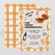 Engraçado e Whimsical WTF "Ação de Amizade" convites de festas de comemoração de Ação de Graças. Apresenta desenhos de rabisco de torta de abóbora, vinho, um peru pateta sentado em um bebendo de coquetel, e folhagem de outono com estrutura ondulada de barqueiro com fundo xadrez. Cores para torta de abóbora, creme e preto.