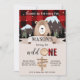 Aproxime-se por um tema divertido e selvagem do Urso Bebê, Xadrez de Buffalo, Convite para primeiro aniversario de Urso Único.