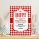 É um menino! Convite para chá de fraldas de xadrez de búfalo vermelho e branco.