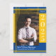 Convites Xadrez de Foto de Graduação de Cor Azul Dourada