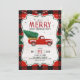 Aproveite este chamado convite de Natal do país! É a maneira perfeita de convidar convidados para a sua festa de Natal. Este é um convite festivo desenhado com um caminhão vermelho carregando uma árvore de Natal, sobre um fundo de madeira e xadrez vermelha de búfalo!