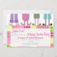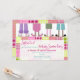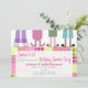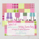 Um convite de festas do descanso do aniversário que caracteriza uma ilustração de quatro pares de pés que vestem o flamingo, o urso, o gato, e os deslizadores do coelho. Os pijamas têm o esquema de cores roxo, cor-de-rosa, verde, e de turquesa. O fundo é xadrez. Personalize o texto.