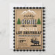 Este adorável convite de aniversário é a maneira perfeita de anunciar o aniversário do seu pequeno aniversário. É a primeira impressão perfeita para seu acampamento, ao ar livre, aventura, ou festas de lenhador. Seus convidados estarão prontos para se divertir assim que receberem este convite exclusivo. Verifique as diferentes opções de papel, fontes, opções de canto, etc.