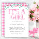 Convites Xadrez rosa Chá de fraldas de Garota Floral com Aq