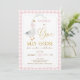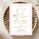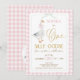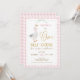 Xadrez Quinta-Rosa Um primeiro aniversario Ganso Bobo Convite bobo Docinho Recebe o primeiro convite de aniversário com um ganso, rosa e um arco verde, quadro redimensionado, padrão de xadrez cor-de-rosa e algum texto de ouro falso.