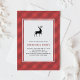 A xadrez vermelha clássica com convite | da festa natalícia dos cervos convida a família e os amigos a sua festa natalícia com este convite customizável do feriado. Caracteriza o teste padrão vermelho da xadrez, a ilustração dos cervos e a tipografia clássica. Personalize adicionando seus próprios detalhes. Você pode mais personalizar a parte traseira adicionando uma foto ou toda a outra imagem.
