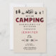 Um simples, moderno, elegante e festa de solteira de fim de semana de convite à modelo com tema de acampamento, com xadrez vermelha no título "acampamento", acampamento desenhado à mão e ícones ao ar livre (acampamento de incêndio, marshmallow, tenda, lâmpada, etc.) com uma textura moderna e angustiada. Uma escolha encantadora para um fim de semana de despedida de solteira de acampamento divertido, caminhada ou qualquer lugar ao ar livre.