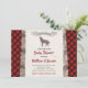 convites para chuveiros de bebês com trim de xadrez de búfalo, pássaro prateado e uma silhueta de lobo contra fundo de madeira, para dar boas-vindas a um menino