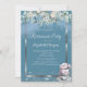 Xícara de chá elegante, flores, moldura prateada e confete em fundo azul. Selecione o botão "personalizar" para alterar o estilo, a cor e o tamanho da fonte. Convide seus convidados para levantar um copo e se unir à diversão com este convite festivo.