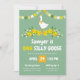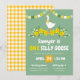 If your silly little goose is turning one, why not throw them a goose themed first birthday party? Invite your guests with this one silly goose birthday party invitation in green with yellow daffodils and a silly goose wearing a party hat and a marigold yellow bow.