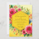 Vibrant fuchsia and coral blooms mingle with lush green foliage against a bright, sunny yellow backdrop. This design evokes a feeling of abundant joy and romantic warmth, perfect for a lively occasion. The abundant floral elements suggest a natural, celebratory theme.