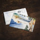 Este postal apresenta uma aquarela de velho gênio fiel no Parque Nacional de Yellowstone.