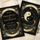 Descubra nosso elegante convite de casamento Yin Yang Lovers Tarot, apresentando um design sofisticado de arte linear em bege, preto e dourado. O símbolo do yin yang representa graciosamente a interação harmoniosa das energias femininas e masculinas, adornado com rostos delicados. Complementado por símbolos do sol, lua e olho cósmico, simbolizando proteção divina.