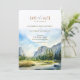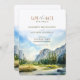 Convide seus convidados para seu dia especial com este espantoso "Salve a Data" com uma paisagem de aquarela do Parque Nacional Yosemite. Mostrando os desfiladeiros e o verde exuberante do Vale de Yosemite, este convite captura a beleza natural do parque icônico com tons azuis, verdes e de terras suaves. Ideal para um casamento rústico, ao ar livre ou de destino, a elegante tipografia e ilustração serena criam uma prévia perfeita de sua celebração inspirada na natureza. Ponha o tom para um casamento inesquecível cercado pela majestade de Yosemite.
