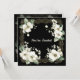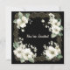 A beautiful minimalist black and white wedding invitation with a gold colored frame enclosed a white tree blossom image.