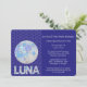 Convites Z Luna geek azul e roxo da Lua cheia do espaço